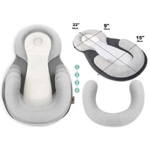 That's because the shape of the portable baby bed imitates the infant's embryo period and Mimics the shape of the female uterus. It has an ANTI-ROLLING shaping pillow to stop them spilling over into awkward positions!